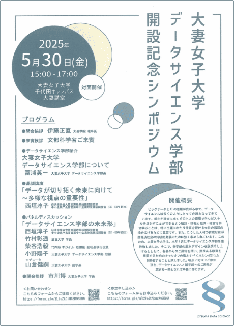 | 2025/12/8(月) | 第1回大妻データサイエンスセミナー【学びを深める】 |