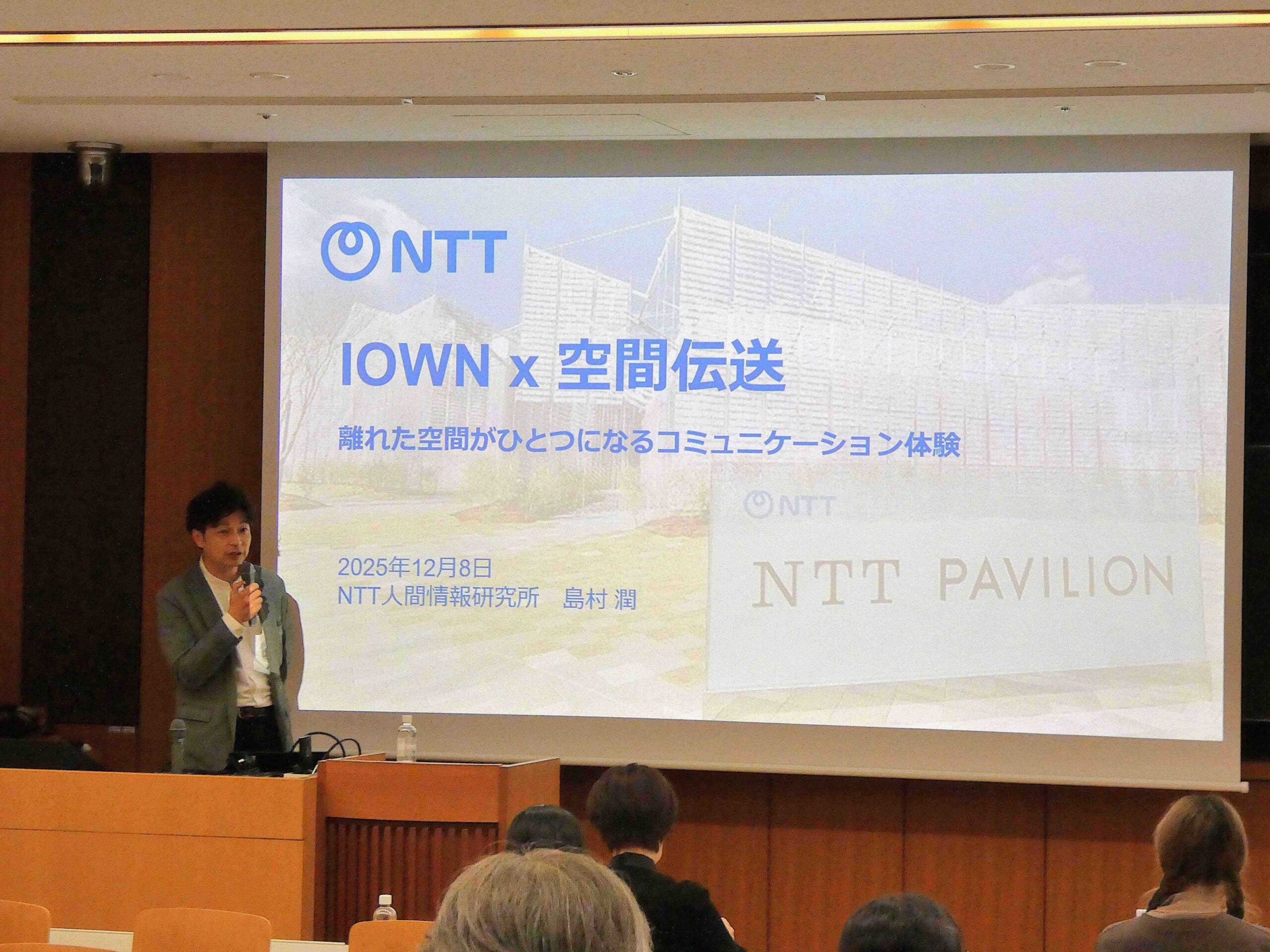 今回のセミナーでは、「IOWN x 空間伝送 ~離れた空間がひとつになるコミュニケーション体験~」をテーマに、NTT人間情報研究所の島村潤氏をお招きし、NTTパビリオンの実現にあたって直面した技術的な課題や挑戦について、わかりやすく解説いただきました。